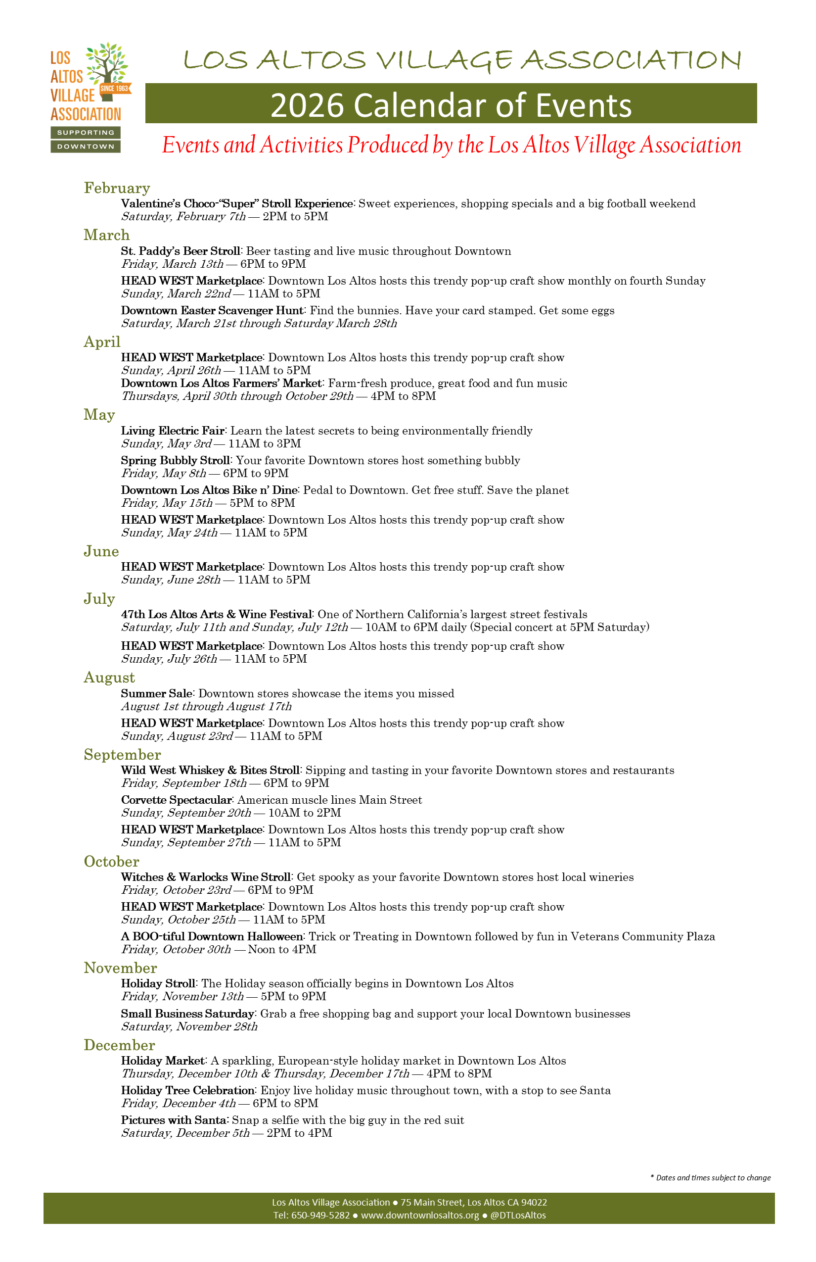 2026 Los Altos Village Association Calendar of Events!