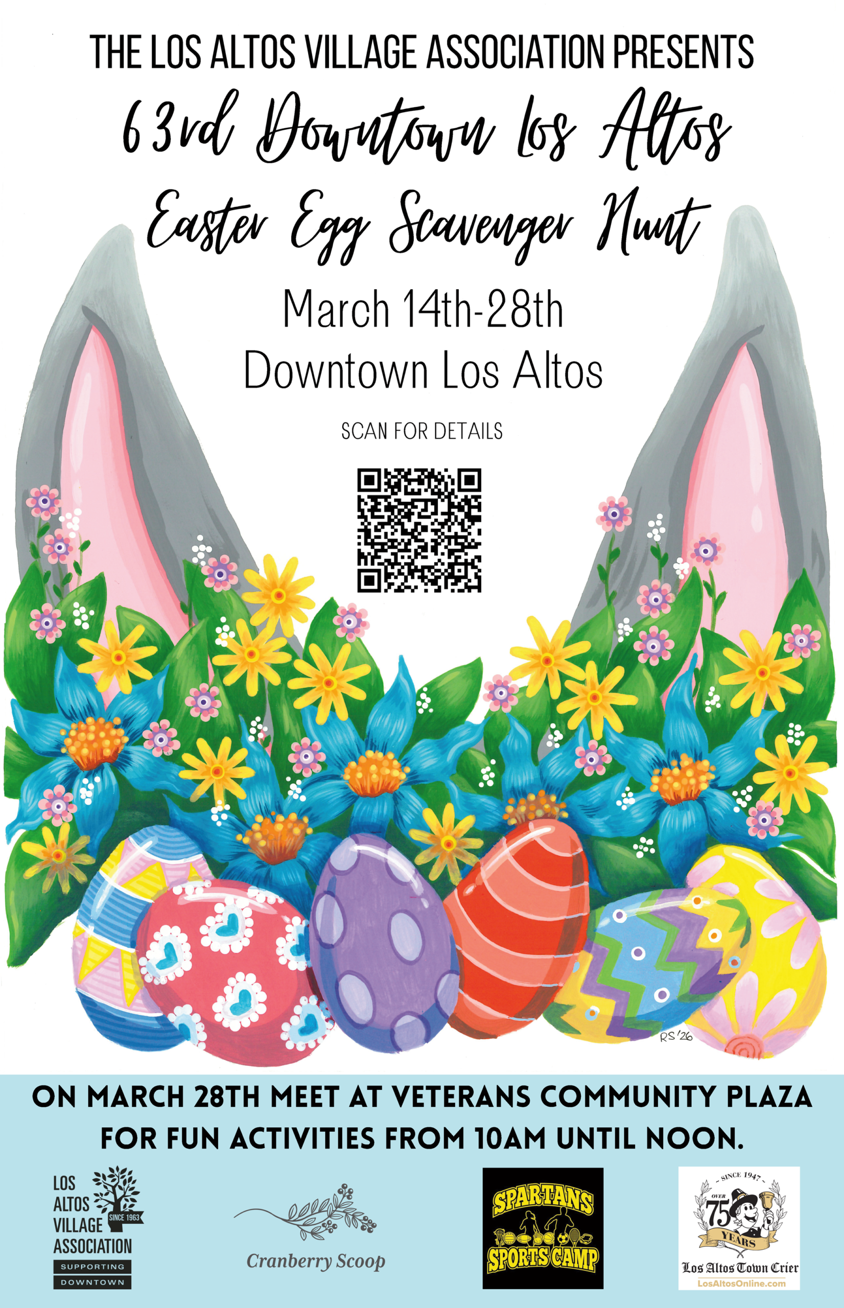 Join the merchants of Downtown Los Altos as we celebrate a new event, the Downtown Los Altos Easter Egg Scavenger Hunt from March 14th to 28th. Pick up your game cards beginning March 14th at Linden Tree Books (265 State Street) or Cheeky Monkey Toys (173 Main Street) and then spend two weeks searching for clues throughout Downtown Los Altos merchants. All are invited to join us in Veterans Community Plaza from 10am-Noon on March 28th for fun and games. Meet the Easter Bunny and take pictures!