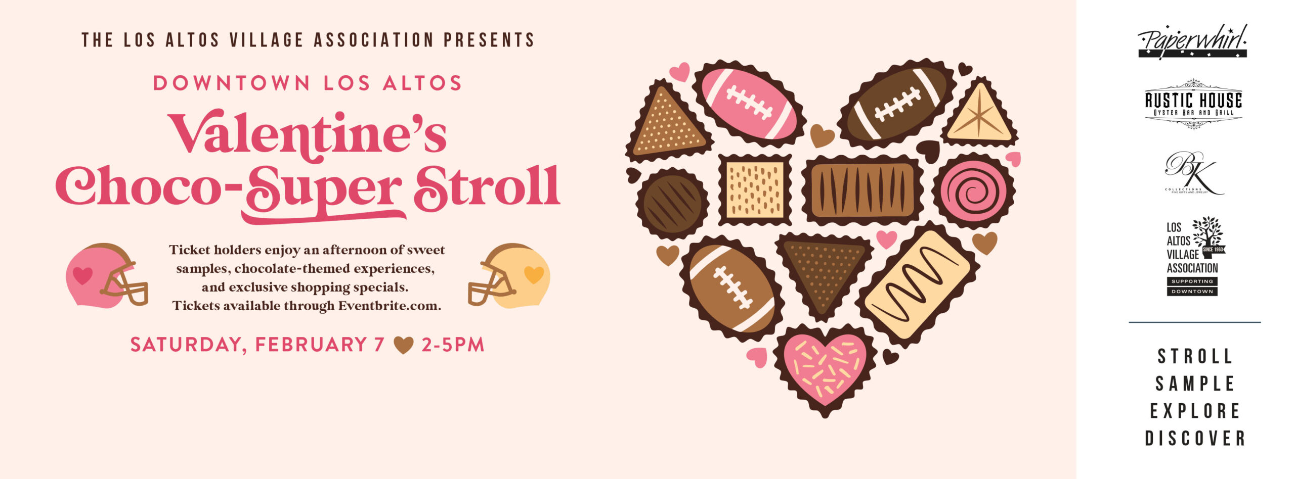 Join the Los Altos Village Association for an afternoon of chocolate knowledge and tasting at the Fourth Annual Downtown Los Altos Valentine’s Choco-“Super” Stroll Experience on Saturday, February 7th, 2026, from 2 – 5 pm.